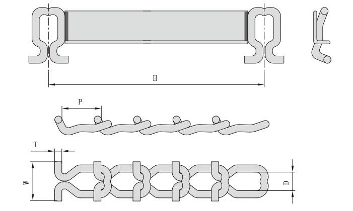 鏈號 節(jié)距 鏈節(jié)內(nèi)寬 鏈節(jié)全寬 鏈節(jié)厚度 鏈條中心厚度 平均抗拉強(qiáng)度